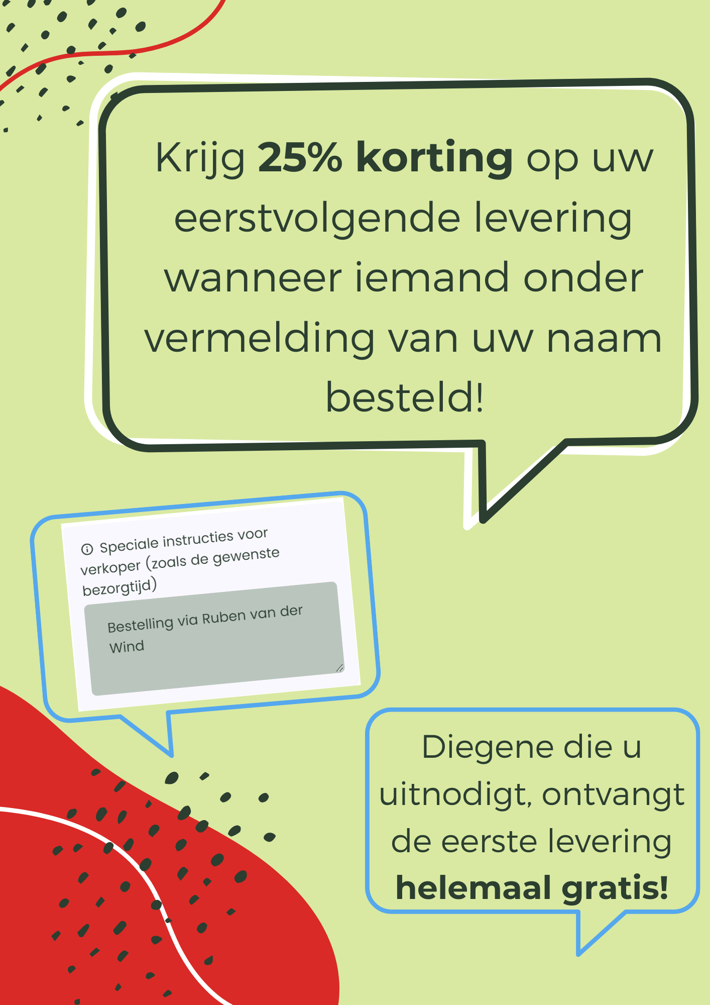 Krijg 25% korting op uw volgende bestelling wanneer iemand onder vermelding van uw naam voor het eerts bij ons besteld!